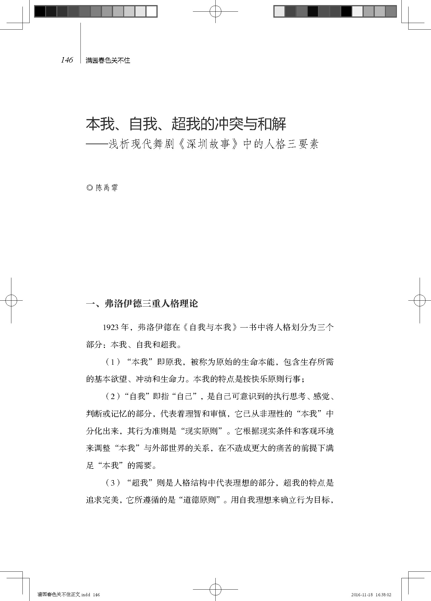 本我、自我、超我的冲突与和解———浅析现代舞剧《深圳故事》中的人格三要素 陈禹霏